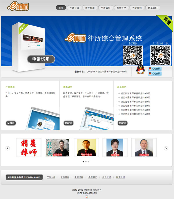 e律師技術團隊開發的律師事務辦公管理系統,與眾多律師事務所共同協作,在各位律師精英的大力支持下,經一年多的試運營,律師事務辦公管理系統命名為“e律師”律所綜合管理系統,同時,e律師官網正式上線,網址:m.bsdgg.cn。