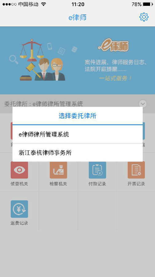 登錄后,如果有委托過多家律所可以選擇不同的律所查看案件各項相當內容